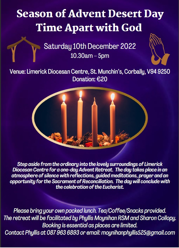 Saturday 10th December, 10:30am to 5pm: Advent Desert Day in Limerick Diocesan Centre