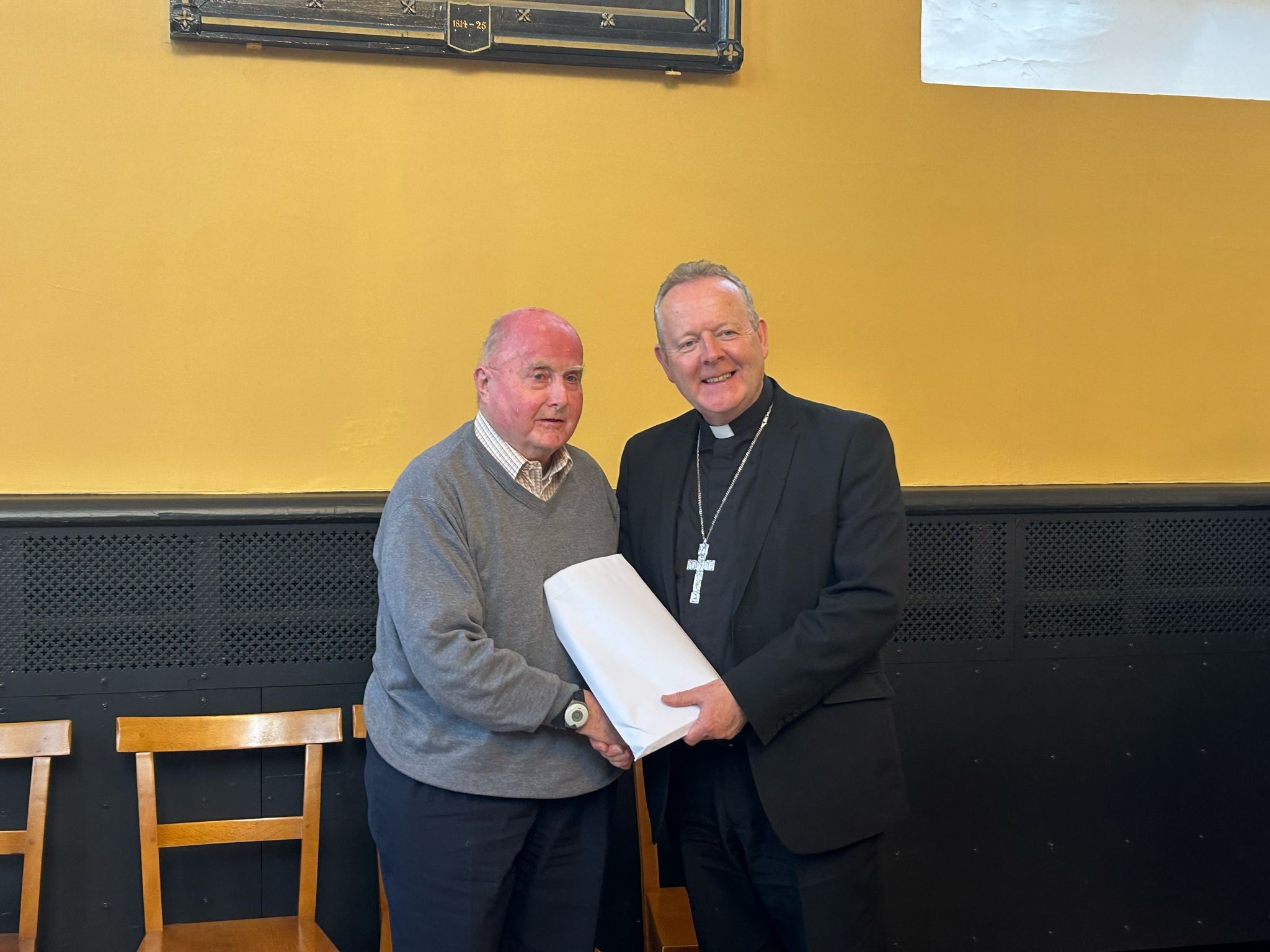 Canon Donough O’Malley will be celebrating the 60th anniversary of his ordination on Friday June 13th . Pictured with Archbishop Éamon Martin in Maynooth.