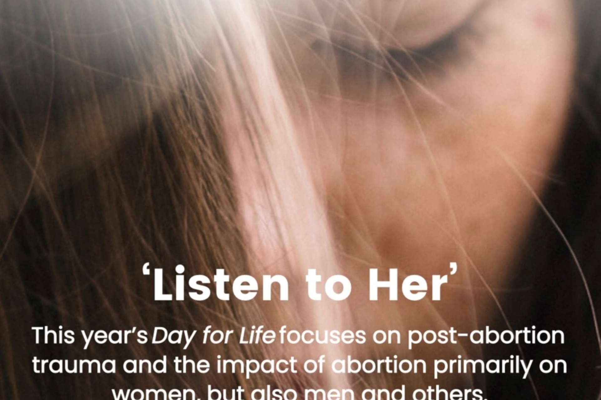 Day for Life is celebrated this year on Sunday 18 June. The theme is ‘Listen to Her’ and focuses on the experience of one Catholic woman in the aftermath of abortion. It tells of her journey towards healing. The hope is that this will help people to listen, to understand and to respond with compassion.