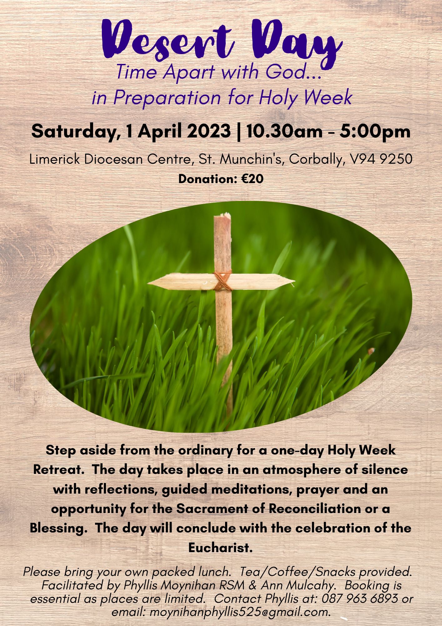The day takes place in an atmosphere of silence with reflections, guided meditations, prayer and an opportunity for the Sacrament of Reconciliation or a Blessing. The day will conclude with the celebration of the Eucharist.
