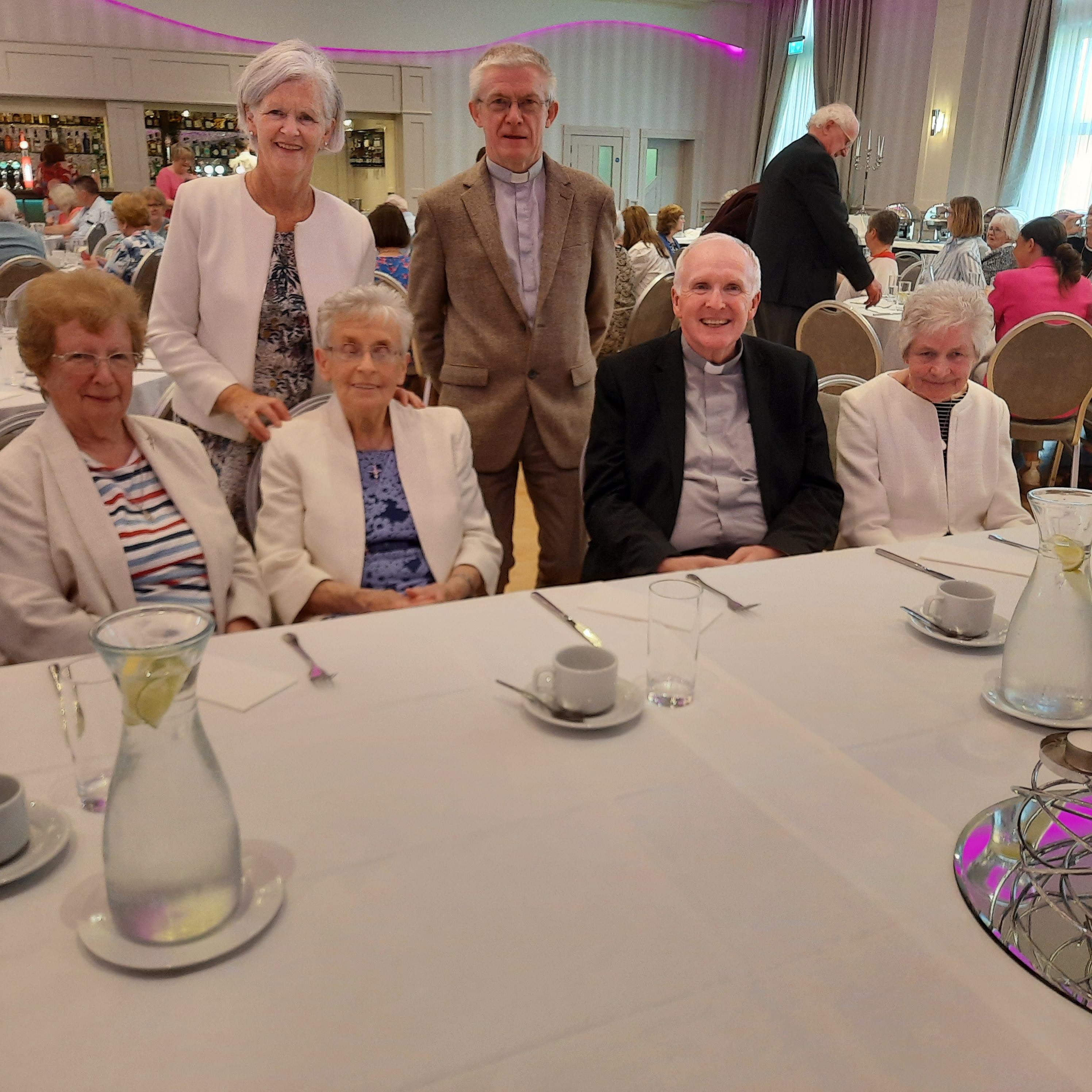 Bishop Leahy was the chief celebrant at Mass and he was joined by Frs. Frank O’Dea, Canon Frank Duhig, Fr. Joe Cussen and Fr. John Mockler. Sr. Phyllis Moynihan, Vicar for Religious and their Superior, Sr. Kathleen Coleman were in attendance. Following the liturgy a reception was held in the Longcourt Hotel where the Sisters were joined by parishioners and the staff from the Desmond complex.