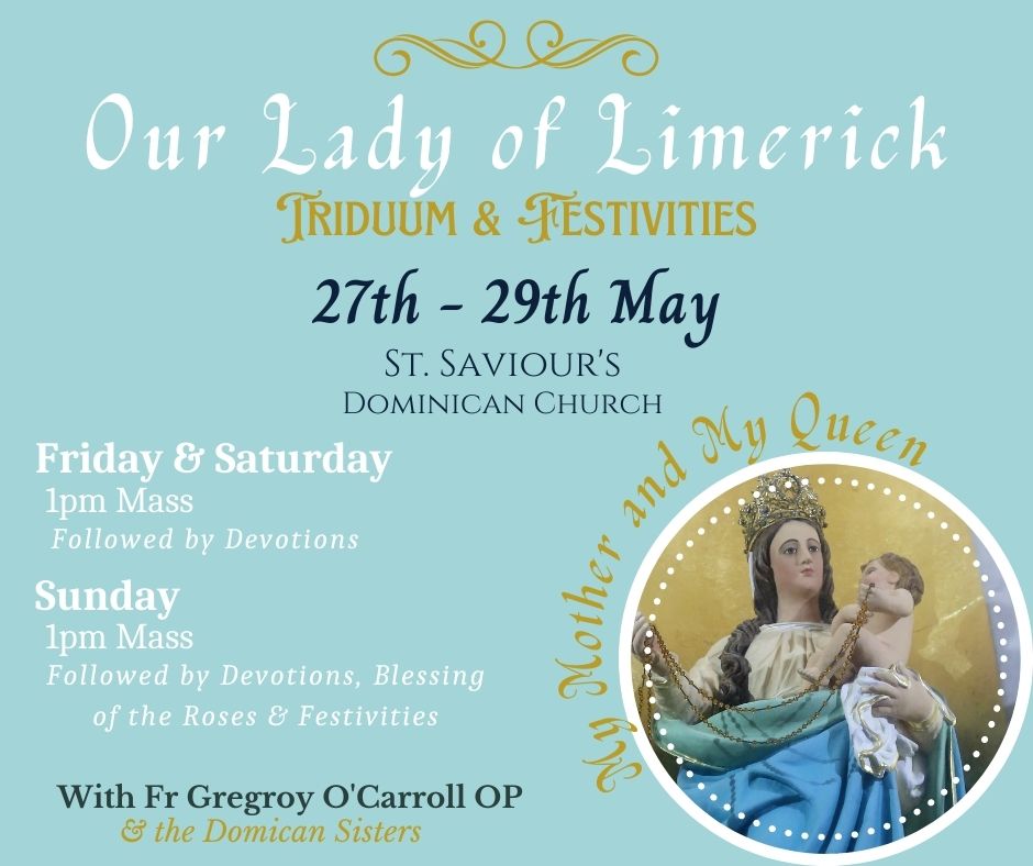 Our Lady of Limerick Triduum 27-29 May at St Saviour's Dominican Church. 1pm Mass followed by devotions.