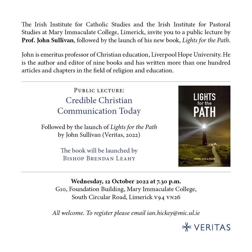 Public Lecture on ‘Credible Christian Communication Today’ by Prof. John Sullivan and book launch of ‘Lights for the Path’ by Bishop Brendan Leahy.