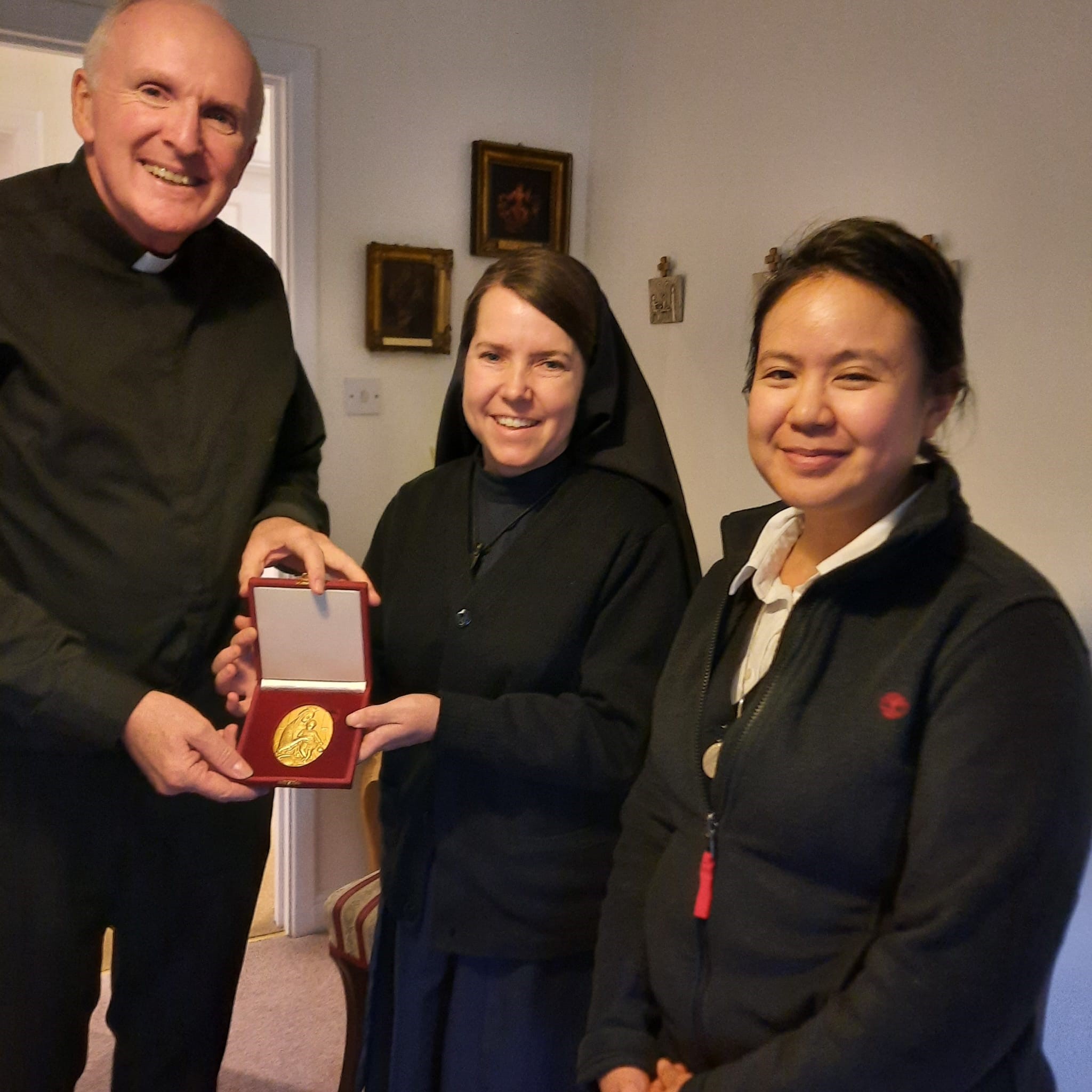 Sisters Miriam and Valerie with Bishop Leahy on November 9th. Bishop Leahy presented a medal of Our Lady to the Sisters to celebrate their arrival in Limerick.
