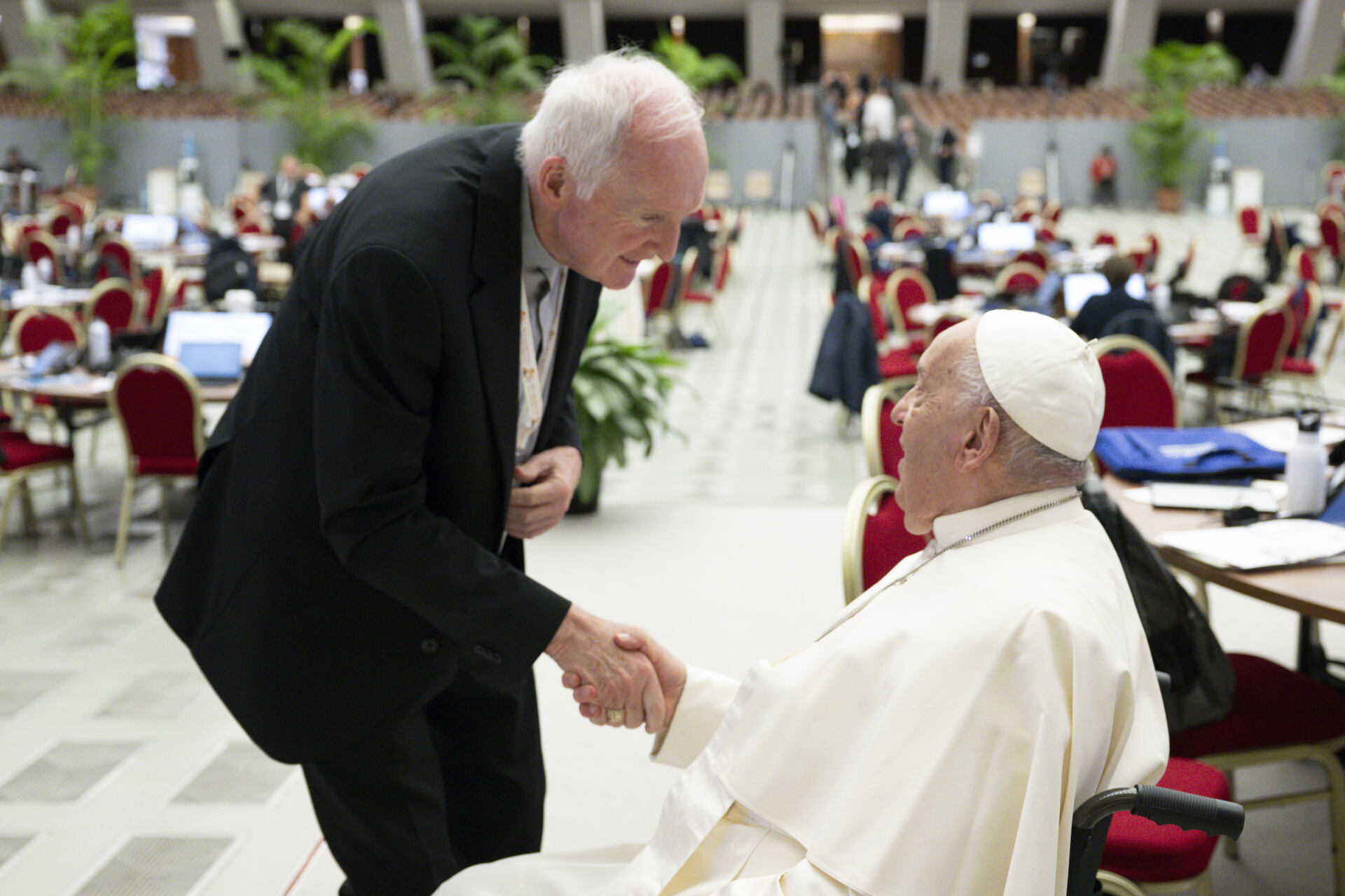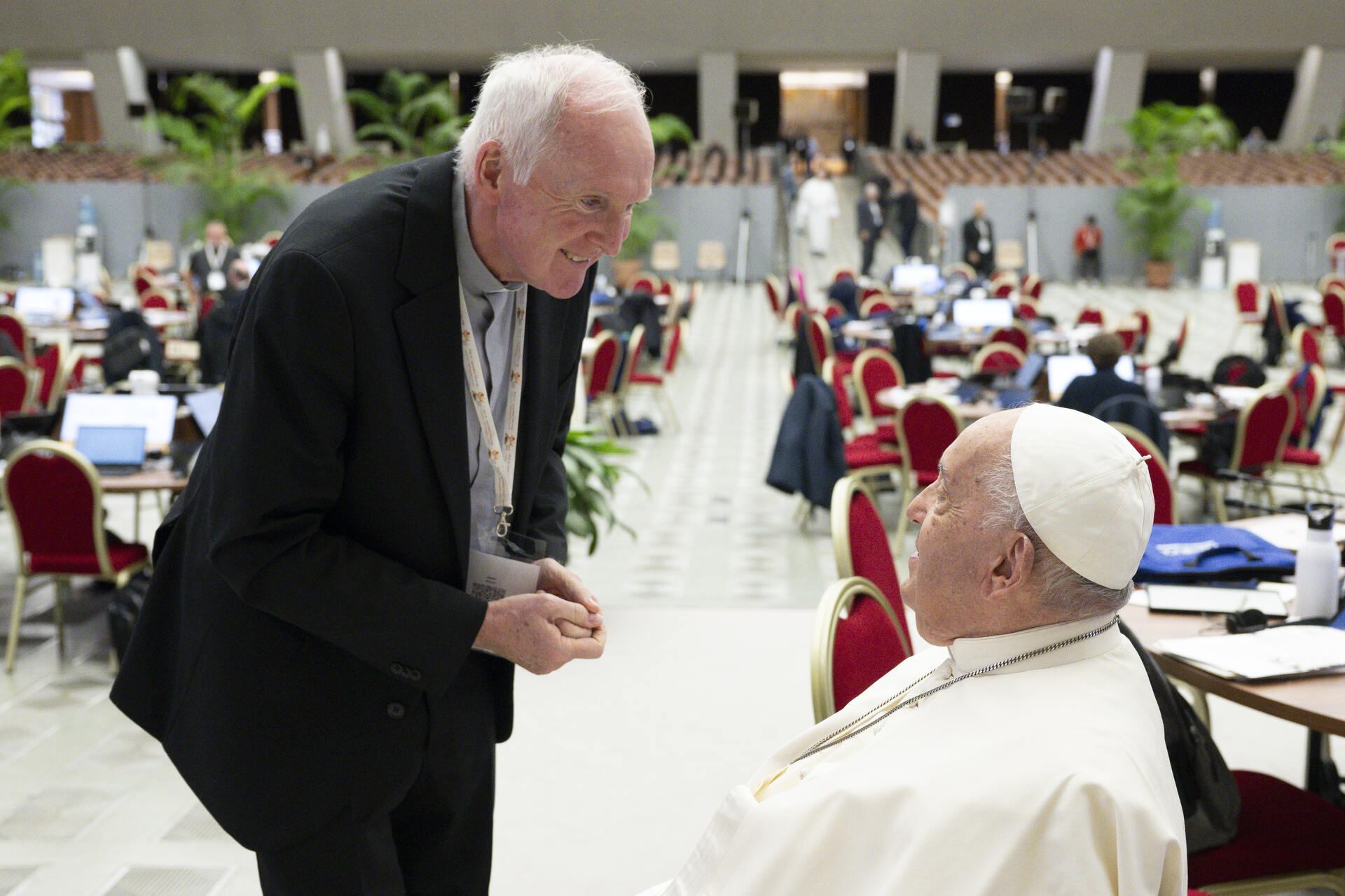 Bishop Brendan exchanging pleasantries with Pope Francis at the October General Ordinary Assembly of the Synod.
