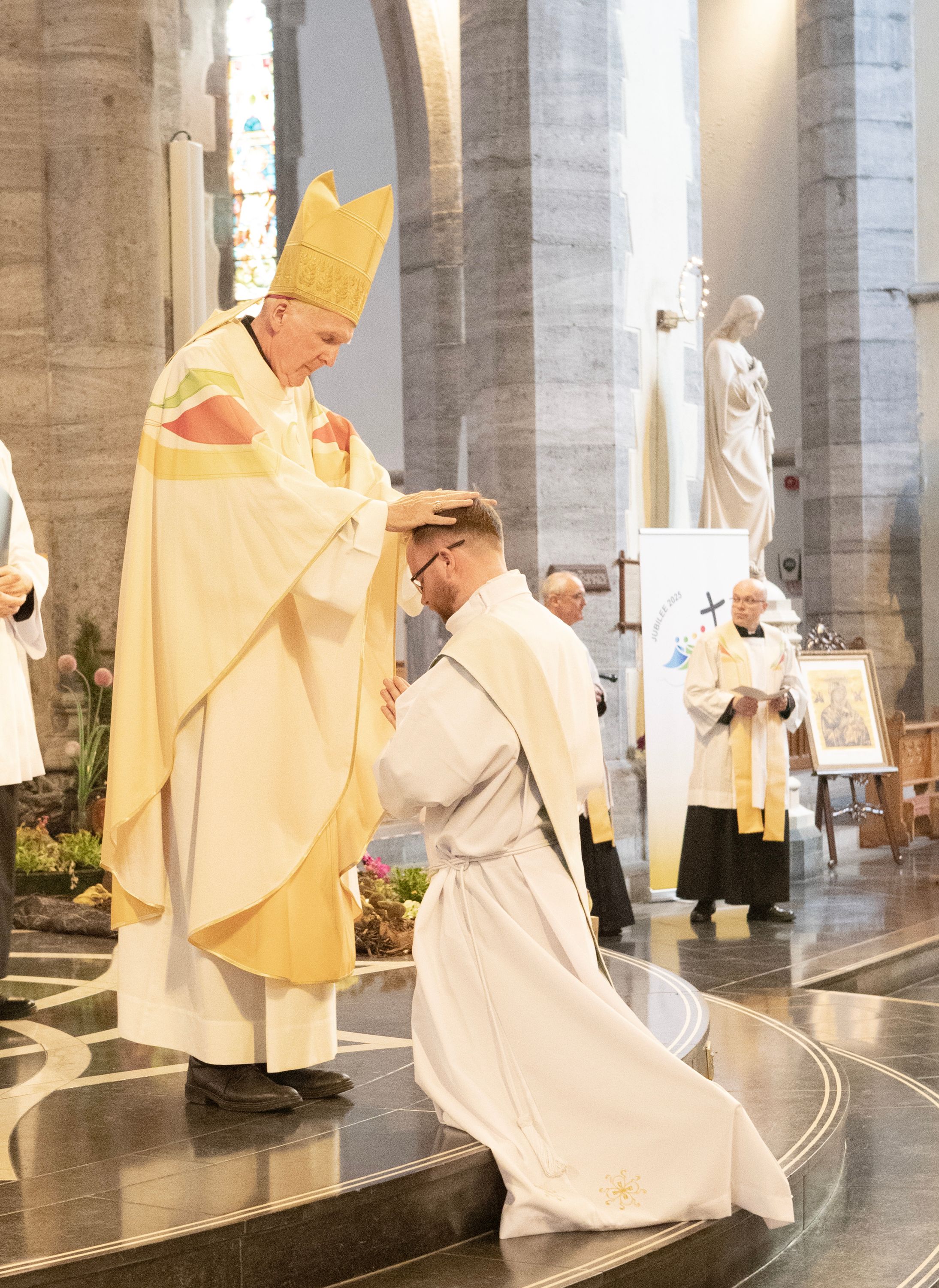 Addressing Tim directly in his homily, Bishop Leahy said, “What a wonderful year to be taking this step -a Jubilee year that speaks so much of hope and the year of the election of a new Pope that marks a new moment in the life of the Church. Your ordination brings much joy and hope to our Diocese.”