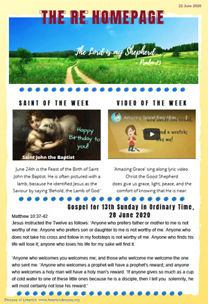 Download this week's Children's Newsletter to find out about next Sunday's Gospel. We have our Saint of the Week, Video of the week as well as a picture to colour!