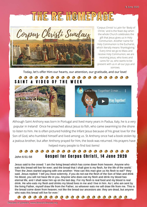 Download this week's Children's Newsletter to find out about Corpus Christi Sunday. We have the Saint of the Week, our Video of the week as well as a crossword a picture to colour!