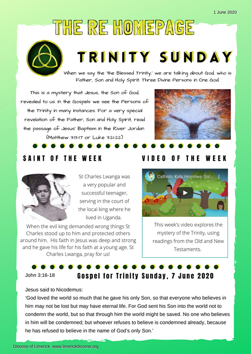 Download this week's Children's Newsletter to find out about Trinity Sunday. We have the Saint of the Week, our Video of the week as well as a quiz a picture to colour!