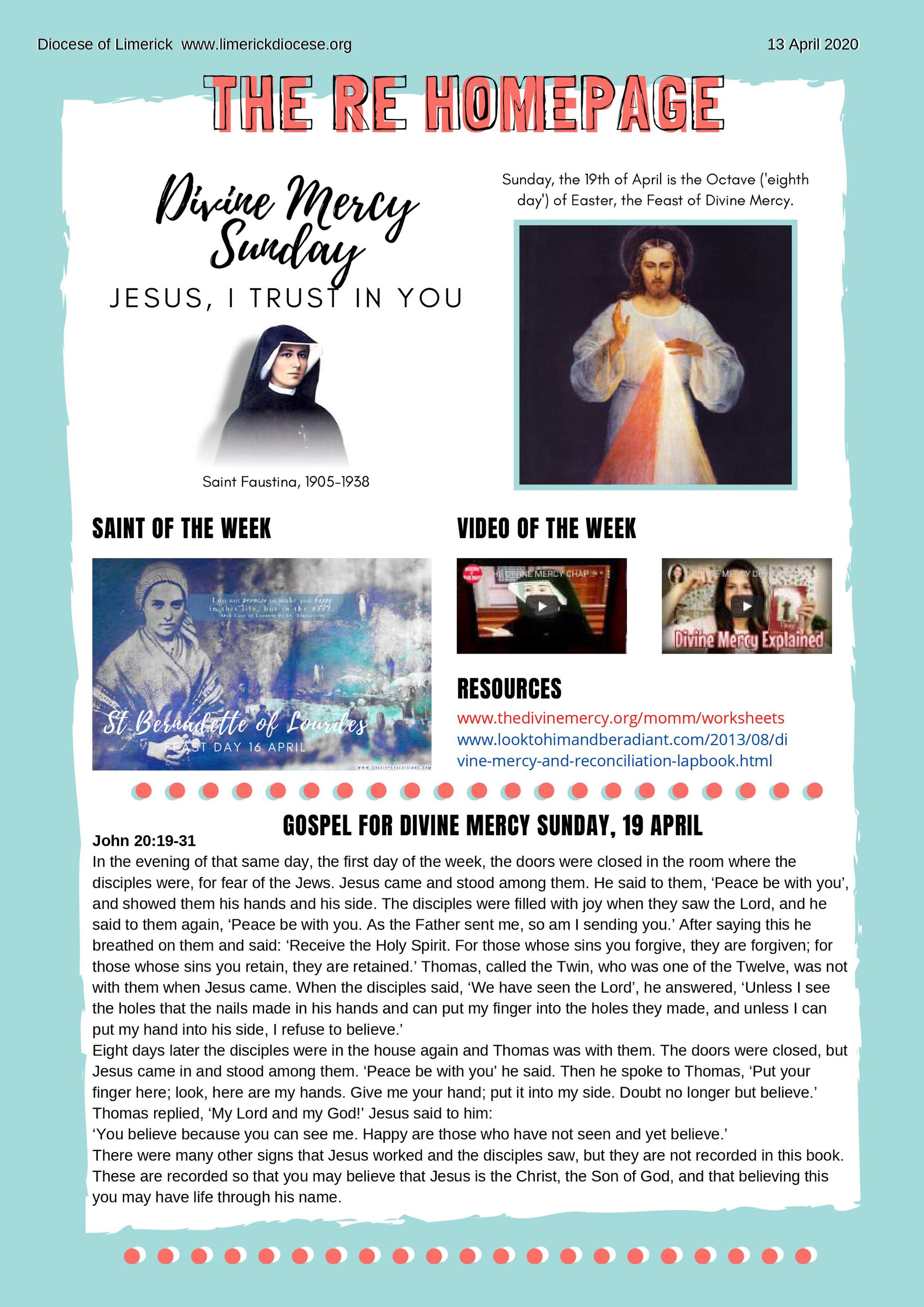 Download this week's Children's Newsletter to find out about Divine Mercy Sunday. We also have the Saint of the Week and our videos of the week.