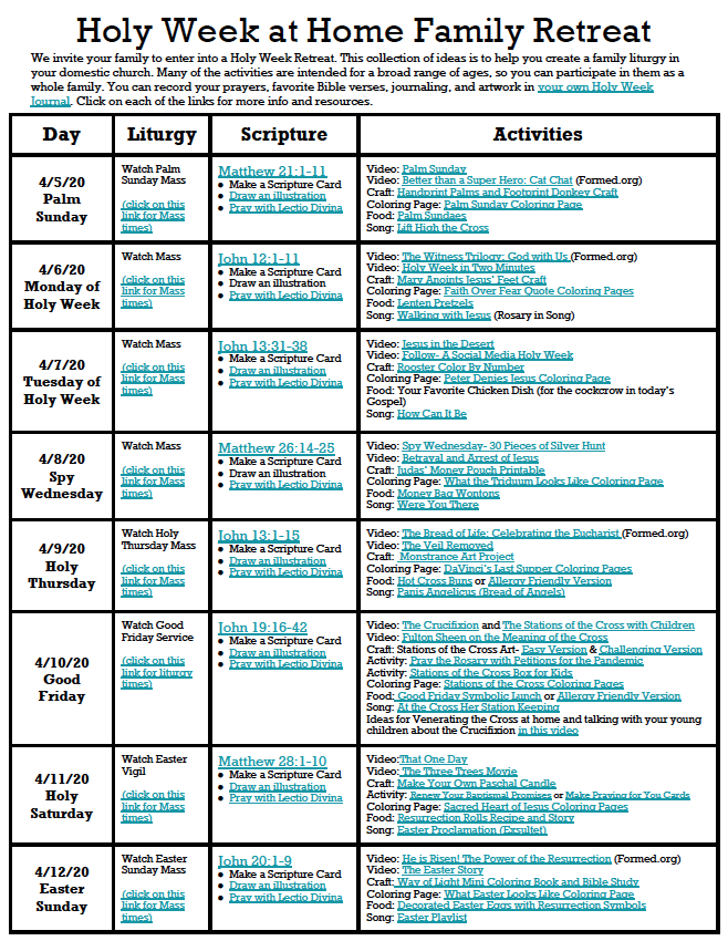 Below is a Home Family Retreat Timetable for Holy Week that's is intended to act as a starting point for families, and offer activities that would work well for a variety of ages.
