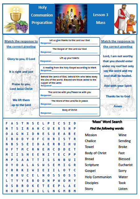 In this third lesson Eleanor, Johanna and Fr Chris help girls and boys to learn the prayers and responses for the different parts of the Mass and prepare them to receive Jesus in Holy Communion.